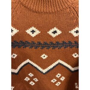 Vintage Jones New York Brown Mock Neck Hand Embroidered Wool Sweater sz S EUC