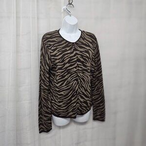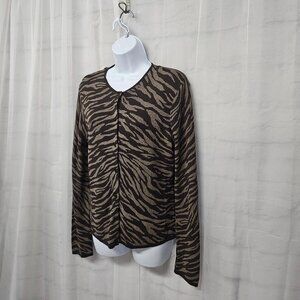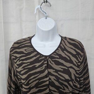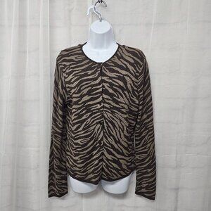 Vintage Jones New York Cardigan Brown Zebra Retro Coquette Tribal M
