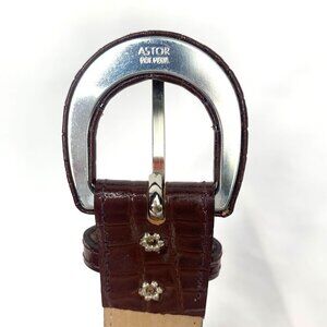 Vintage Jones New York Croc Embossed Leather Belt - Brown, Size 12
