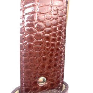 Vintage croc embossed leather belt by Jones New York. Textured brown leather. Leather wrapped single prong buckle closure, 5 holes for adjustable fit.