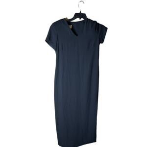 Vintage Jones New York Dress Size 10 Petite Black V-Neck Line Fitted Sheath Dress