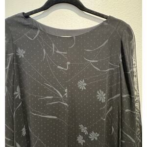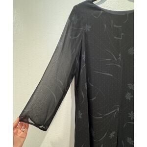 Vintage Jones New York Dress Size 6 Black Floral Print Sheer Long Sleeve Front