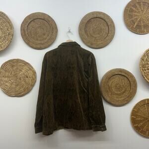 Good used condition Approximate measurements laying flat: • Chest: 25.5" • Length: 28" Step back in time with this vintage Jones New York long-sleeve shirt. Featuring a green and brown paisley print, this zip-up top is giving major 90s/Y2K vibes. The velvet-like material adds a touch of luxury to this unique piece. Perfect for adding a retro flair to your wardrobe. The stock photo is AI generated for style reference ONLY. Exact details may vary slightly from actual item. Please see other photos for exact details of item.