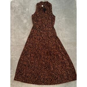 Vintage Jones New York Maxi Dress Women Size 8 Leopard Print Pleated Sleeveless