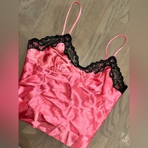 Vintage Jones New York Pink Black Lace Silk Slip Tank Womens Lingerie XL