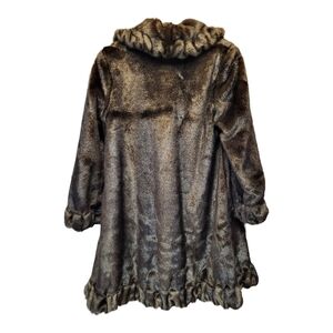Experience the ultimate in comfort and style with this vintage Faux Fur Mink Jacket from Jones New York. Crafted with a plush texture, the jacket offers a cozy feel on those cild fall and winter days while maintaining a chic appearance. Its rich brown color and relaxed fit make it a versatile addition to any wardrobe.