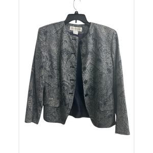 Vintage Jones New York Women’s Gray Paisley Print Buttoned Blazer Jacket Coat Size 14