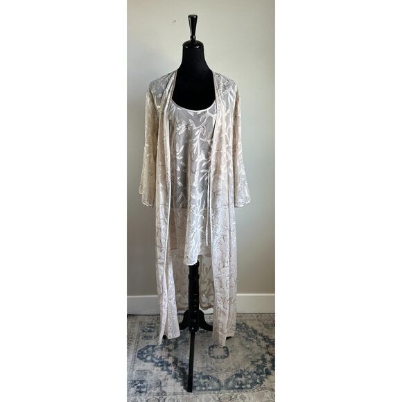 Vintage Jones New York Women’s Sheer Burnout Leaf Design Chemise/Robe Set S\M