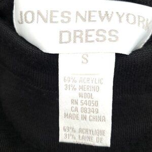 Vintage Jones New York Wool-Blend Maxi Skirt Side Slit/Buttons in size Small, color Black. Excellent used condition though missing a belt according to the care tag (curiously, there are no belt loops and the waist is elasticized). This is a comfy, easy to wear piece that's unexpectedly edgy: it has a deep side slit with buttons. Pulls on to wear; fabric is mid-weight and finely knit, doesn't add bulk. Adorable with tall boots.