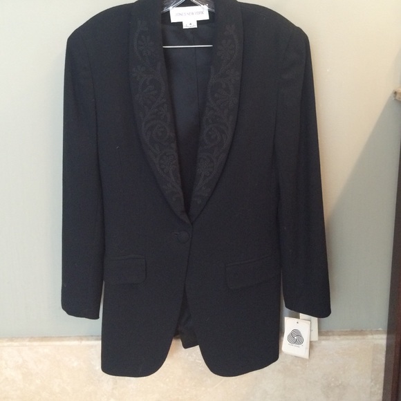 New with tags!!...embroidered shawl collar blazer with shoulder pads...100% wool...longer length (30")...see additional listing for matching skirt