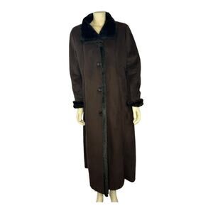 Vintage Jones New York's luxe style trimmed, faux fur long brown coat size large