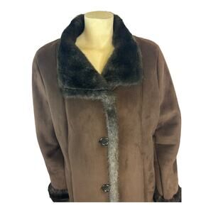 Vintage Jones New York's luxe style trimmed, faux fur long brown coat size large