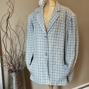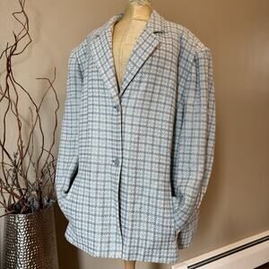 Vintage Jones Wear Tweed Blazer Women 20W Blue White Plaid Jacket Career Retro