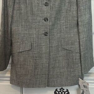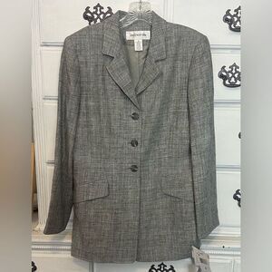 Vintage Jones New York Silk/Linen Blazer. Stunning rare piece! High quality fabricc. Fully lined with longer style and three front buttons and faux pockets. Sewn in shoulder pads inside the lining gives tailored feel.
