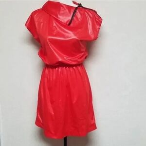 Vintage Joni Blair Futuristic Red Faux Leather Shoulder-Zip Mini Dress Medium