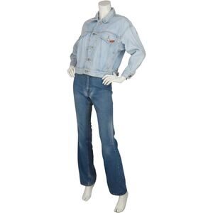 Step back into the 90s with this vintage Jordache cropped jacket. It's not just denim; it's a piece of history with its iconic light wash and the Harley Davidson eagle patch adding an edgy touch. Perfect for the hipster or rocker vibe, it resonates with the grunge and new wave era. Ideal for a cool mom, biker enthusiast, or anyone who loves unique, statement pieces. This trucker-style jacket is a must-have for your wardrobe, combining classic style with a twist of motorcycle culture.