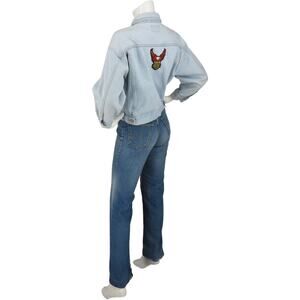 Vintage Jordache Light Wash Harley Davidson Eagle Patch Hipster Groovy Rocker Rock Grunge New Wave Mom Biker Motorcycle Trucker Denim Jean Cropped Jacket