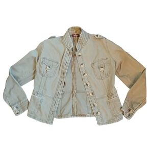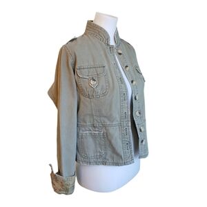 Vintage Jordache Y2K Military Jacket Dstressed Army Green Jean Jacket Sz Small