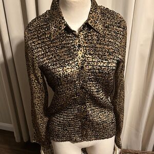 Vintage Jordan animal print button-down blouse. Perfect for versatile wear. Features Simi-sheet sleeves. Excellent condition.