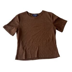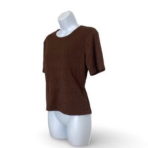 Short sleeve bronze colored knit top with metallic glitter throughout by Jordan. Good preowned condition. No flaws.