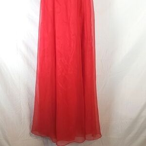 Vintage Jordan formal maxi dress. Pink / red. Sleeveless. Rear flower detail with chiffon train. Excellent condition. Size 9/10, fits like a medium.