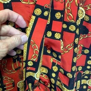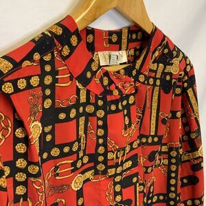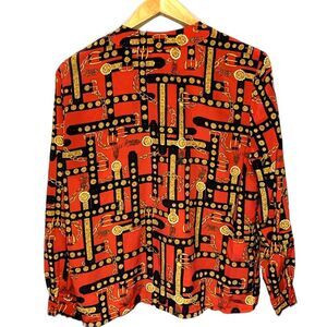 Vintage Jordan Red Gold Black Chain and Belt Print Long Sleeve Blouse Size 14