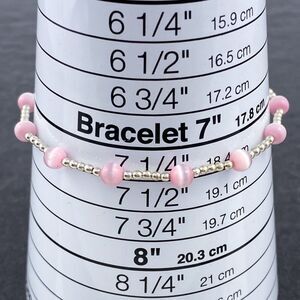 Vintage Jordan Sterling Silver 925 Pink Synthetic Cat's Eye Beaded Bracelet 7.5"