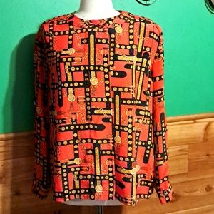 #12 Gently preloved - Vintage stylish hidden button front top - with design - all reasonable offers welcome!