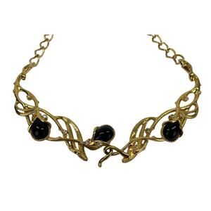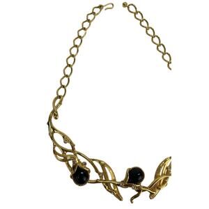 Vintage Jose Maria Barrera for Avon Granada Necklace 1990s Black and Gold Tone