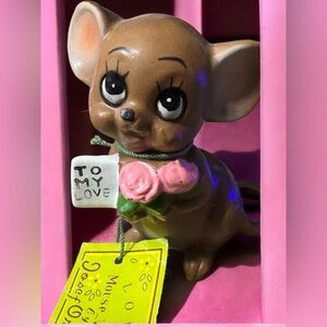 Vintage Josef Orig. ROMANTIC MOUSE FLOWER BOUQUET “To My Love” JAPAN 2.5”