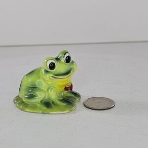Vintage Josef Originals Ceramic Frog Figurine Lily Pad Red Flower