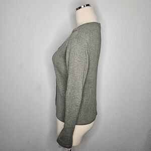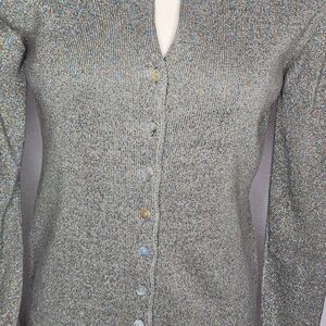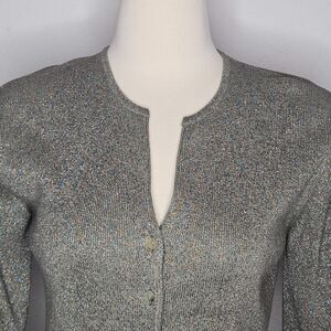 Vintage Joseph A. Silk Metallic Cardigan Sweater Button Front Silver Large Y2K
