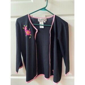 Vintage Joseph Embellished Cardigan Cropped Black Size Large Black Floral