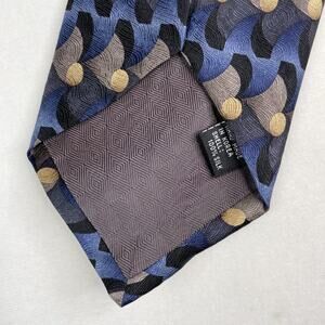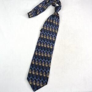 Vintage Joseph & Feiss blue and tan patterned wide width neck tie. Comes pre-tied. In great condition!