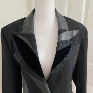Vintage Joseph Ho Wool Blazer Leather Embellishments Beading Sz 8