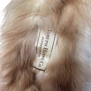 Step into a bygone era with this exquisite vintage fur stole from Joseph Horne Co., Pittsburgh. Its luxurious fur and timeless elegance make it a treasured accessory, perfect for adding a touch of vintage glamour to any outfit. Adorned with the initials MCT, it speaks of a personalized history and unmatched craftsmanship.