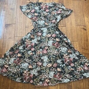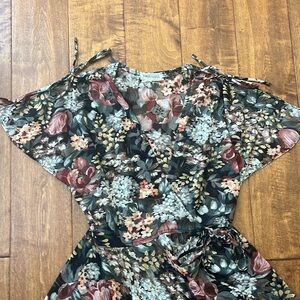 Vintage Joseph Magnin Faux Wrap Floral Sheer Maxi Dress