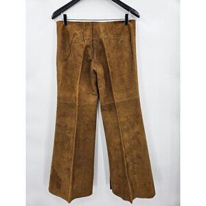 Vintage Joseph Magnin Suede Lace Front Pants Womens 13/L Brown Leather Wide Leg