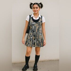 vintage aesthetic, Canadian designer, statement dress, gallery style, elegant day dress, cocktail casual, black gold dress, sleeveless fit and flare, retro art print, Joseph Ribkoff 12, boho classic, made in Canada dress, streetwear, student, school girl, preppy,