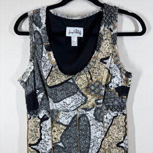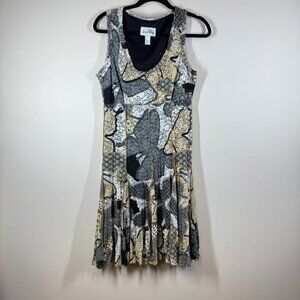 Joseph Ribkoff Black Beige Retro Abstract Patchwork Sleeveless Dress Size 12