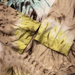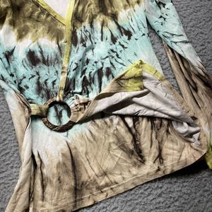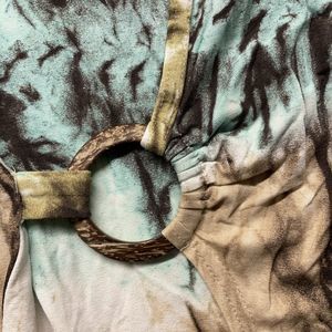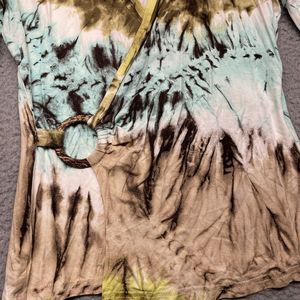 Green Brown Blue tie dye Faux wrap style with circle buckle