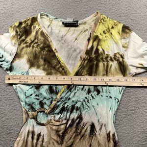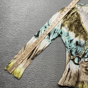 Vintage Joseph Ribkoff Blouse Womens XS Green Tie Dye 90s Fairy Faux Wrap Top