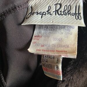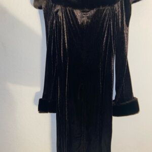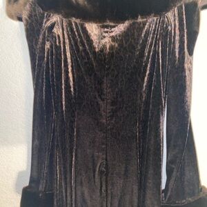 Vintage Joseph Ribkoff Brown Velvet Leopard Print Faux Fur Trim Midi Dress 8