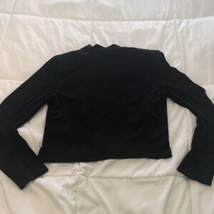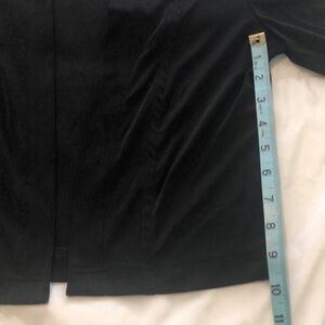 Gently used long lightweight jacket with shoulder pads that can be cut out if not wanted. Great for a quick dress up to an outfit as a layer piece. Able to fit many body sizes because of the fabric content. Minimal wear as shown