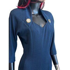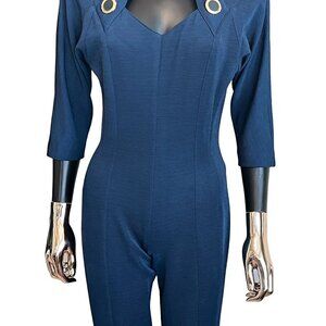 Vintage Joseph Ribkoff Navy Stirrup Jumpsuit Gold Button Detail Size 6