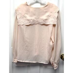 Vintage Josephine Blouse Size 8 Pale Peach Embroidered Sailor Collar Puff Sleeve