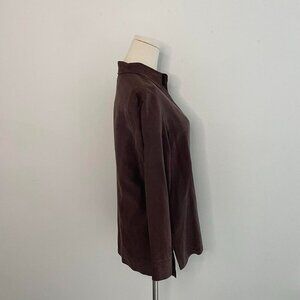 Vintage Josephine Chaus Brown Silk Linen Blouse Button Up Womens Size Medium