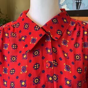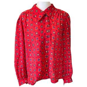Vintage Josephine Red Asymmetrical Southwestern Blouse Size 12