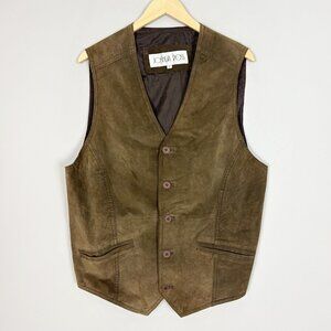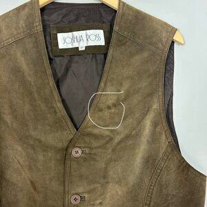 Vintage Joshua Ross 100% Leather Vest Men's Size LARGE TALL Brown Cowboy Western