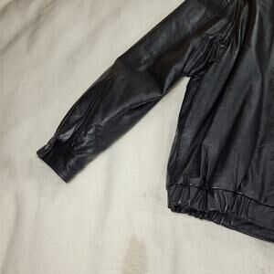 Vintage Joshua Ross Jacket Mens Sz XL Black Leather Bomber Motorcycle Insulated. Please see attached photos for measurements and blemishes.